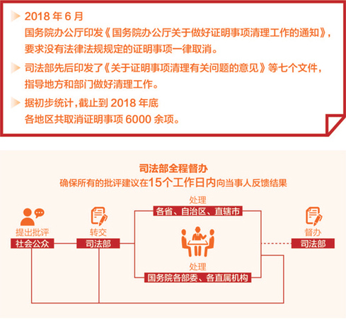 按照国务院办公厅关于做好证明事项清理工作的通知规定,对本地区自行设定的证明事项,除地方性法规设定的外,最迟要于2018年年底前取消?!八痉ú恳允槊婊蛘叩缁暗男问浇辛硕桨?,确保群众的批评建议能得到及时反馈?!彼痉ú肯喙馗涸鹑私樯?。
