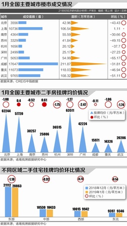 对此,21世纪经济研究院分析师将结合1月份百城二手房挂牌价格数据进行分析,同时选取北京、上海、广州、深圳、杭州、苏州、重庆、武汉、南京和成都10个城市的楼市成交数据,尝试分析重点城市二手房挂牌价降幅明显的变化原因与未来趋势。