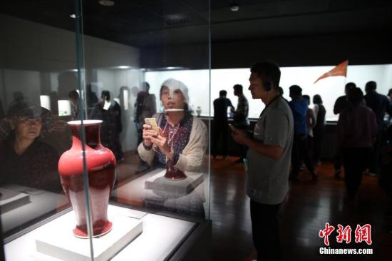 图为2019年2月7日,游客在台北故宫欣赏瓷器藏品。 中新社记者 孔任远 摄