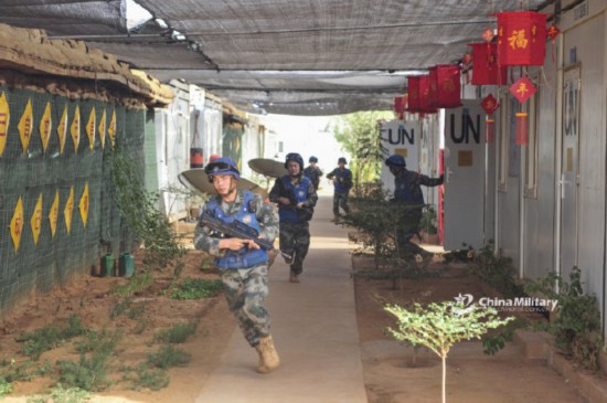 中国第6批赴马里维和部队参加联马团东战区司令部组织的超级营地安全防卫演练