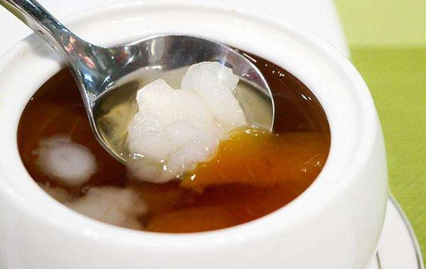 取雪蛤10克、牛腱500克、去核红枣6粒、姜3片;雪蛤先用凉白开浸泡3小时后,把黑色的筋膜和丝状物去除;牛腱切成大块;先将牛腱、红枣、姜放入煲内,加2.5升清水,大火煲沸之后转小火,一个半小时后加入雪蛤,再煲一小时即可;调味后,饮汤吃肉,推荐每周煲1~2次。