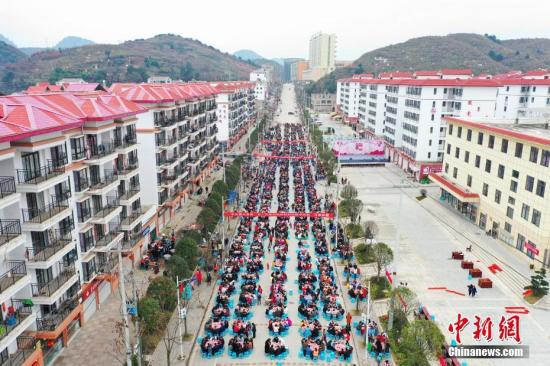 资料图:1月31日,贵州惠水万名易地扶贫搬迁民众同吃团圆饭。中新社记者 贺俊怡 摄