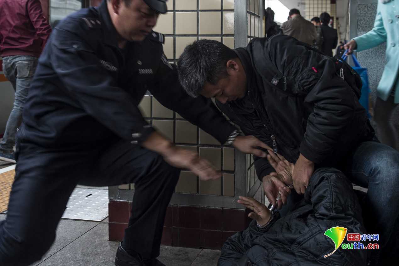 宋鹏飞与车站民警对嫌疑人实施抓捕。长沙铁路公安处 毛继前 摄