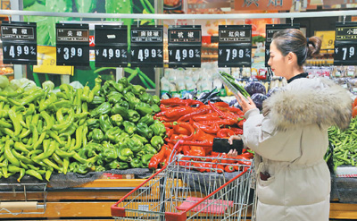 | 近年来,消费升级步伐加快,百姓在消费时对商品的品质要求不断提高,消费方式由实物消费更多地转向服务消费。 1月10日,市民在山东省烟台市新世界百货的超市买菜。 唐 克摄(人民视觉) |