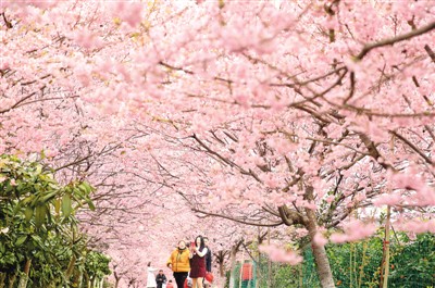 | 2月16日,游客在重庆市北碚区澄江镇五一村欣赏盛开的?;ā?/p> 秦廷富摄(新华社发) |