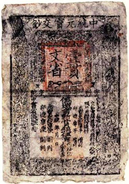 “中统元宝交钞”是元代开国皇帝元世祖忽必烈在登基称帝当年(中统元年,1260年)七至十月,始印制发行的国家纸币,一直使用至元代灭亡。这张与大元帝国同生共死的纸币,一生经历了三个阶段: