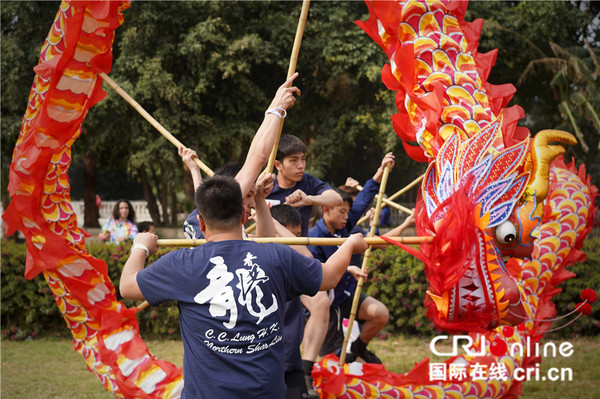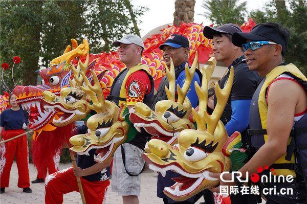 第二届“新春杯”尼罗河国际龙舟赛现场:舞龙表演