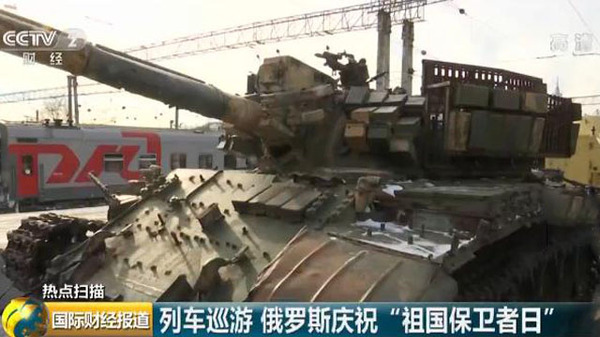 央视网消息:当地时间2月23日,为庆?!白婀N勒呷铡保怼靶鹄谴笞邸本吕分魈獾恼估懒谐蛋凑斩碜芡称站┑拿?,携载从叙武装分子手中缴获的武器,于23日从莫斯科喀山火车站出发,开始巡游全国。