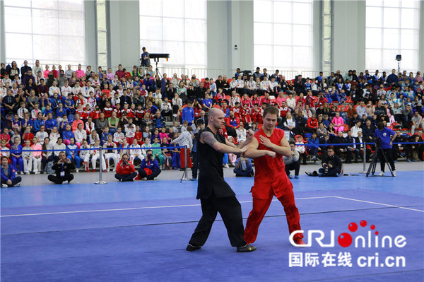俄罗斯参赛选手在开幕式上表演太极推手(摄影:李俊翔)