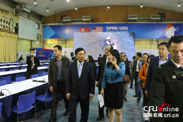 国际在线报道(中国国际广播电台记者 唐伟强、费青朵、魏为):第二次“金特会”国际新闻中心启用仪式2月23日下午在河内友谊文化宫举行。