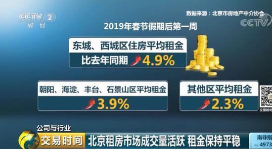 据北京市房地产中介协会的统计数据显示,今年春节假期后第一周,东城、西城区住房平均租金比去年同期上涨4.9%,朝阳、海淀、丰台、石景山区平均租金上涨3.9%,其他区平均租金上涨2.3%。
