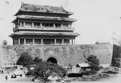 宣武门城楼。北京的城墙上衰草丛生,一派萧索景象。