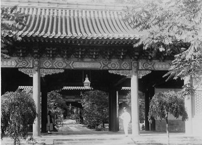 北京翻译学院入口。在这所学院就读的学生都是英国青年,他们毕业后将获得英国驻华领事馆的职位。画面右侧的建筑就是翻译学院,它坐落在英国公使馆中。