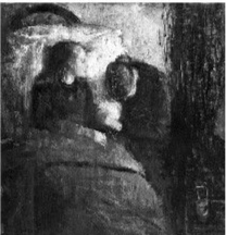 1886年,蒙克创作了《病中的孩子》,生病的孩子气息微弱,但眼睛依然纯澈泛光。身旁的母亲同样孱弱,无能为力地深埋着头。对于逝去亲人的思念,对死亡的恐惧和对生微弱的希望,都在整体灰绿的色调中流淌。1886年,蒙克带着《病中的孩子》与其他三幅作品一起参加在奥斯陆举办的秋季展,却激起了市民及艺术批评界的愤怒——《诺斯克智者报》评论他的画“肮脏”“鱼杂碎”;《晨报》则认为他的画缺乏精神内涵,是一幅荒谬之作。