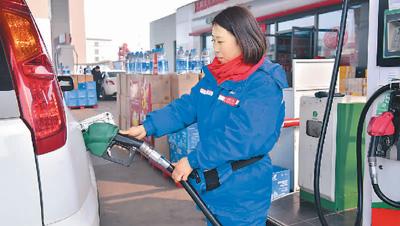 图为石家庄新乐市一处加油站,工作人员在给车辆加油。