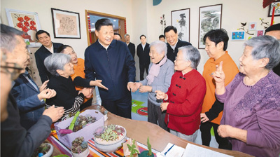 二〇一八年十一月六日至七日,中共中央总书记、国家主席、中央军委主席习近平在上??疾?。图为六日上午,习近平在虹口区市民驿站嘉兴路街道第一分站托老所同老年居民亲切交谈。