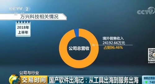 公开数据显示,2018年上半年,万兴科技在境外销售收入为24192.66万元,占到公司总营收的96.46%,公司主要收入都源自于海外。吴太兵告诉记者,当初选择去海外销售软件,主要是当年国内市场盗版泛滥、消费者还没有软件付费的习惯,而近年来,随着国内知识产权?;ちΧ鹊募忧俊⒅Ц斗绞奖憷拖颜吒斗岩庠傅脑銮?,他们也开始逐步开拓国内市场。