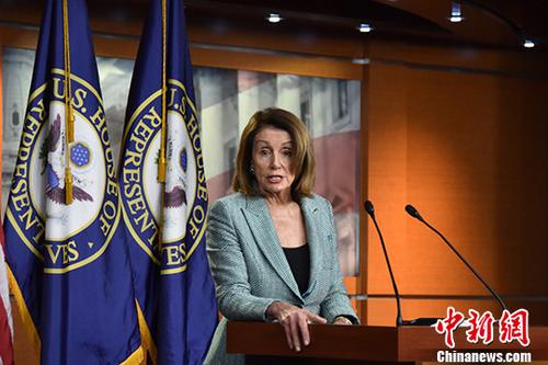 资料图:当地时间3月14日,美国众议院议长佩洛西召开新闻发布会,就国家紧急状态、弹劾总统、年度预算等回答记者提问。她表示,特朗普通过宣布进入国家紧急状态绕开国会筹款做法“违背宪法”,应当被阻止。中新社记者 沙晗汀 摄