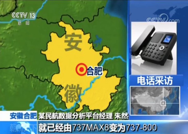 某民航数据分析平台经理 朱然:当天早6点26分海航从??诿览蓟》赏钲诒Π不〉暮桨嗑鸵丫?37MAX8变为737-800,随后祥鹏航空、山东航空以及国航等航空公司都变更了机型。