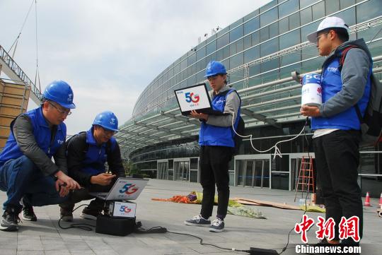 海峡国际会展中心场馆外5G信号测试?!×跸土亍∩?/p>