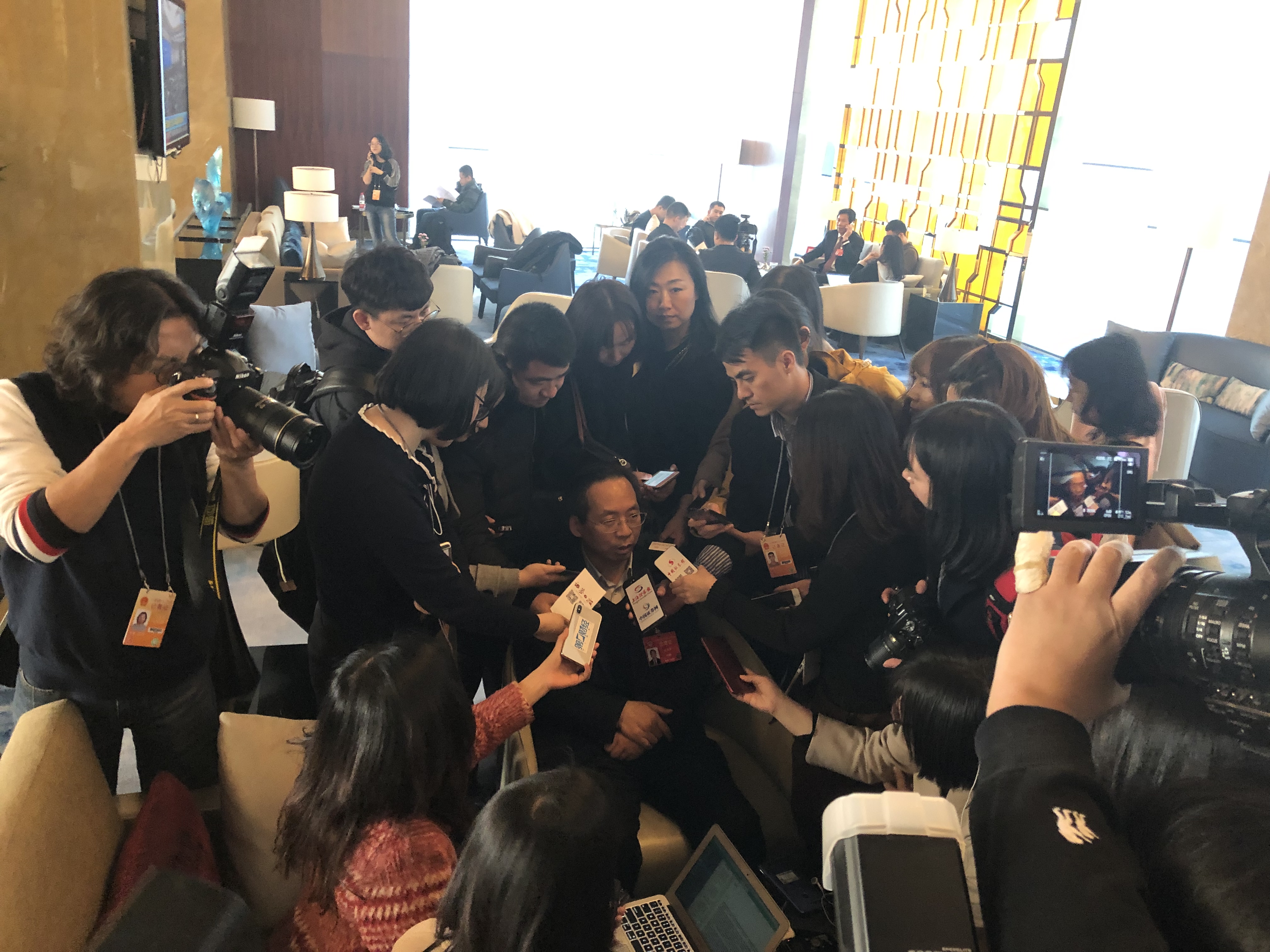 今年全国两会期间,经济界别小组讨论结束后,委员被记者围得水泄不通。 本报记者 崔吕萍 摄