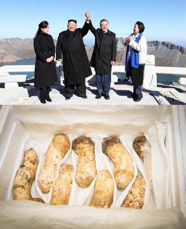 2018年9月,朝鲜最高领导人金正恩向韩国赠送2吨松茸。(青瓦台)