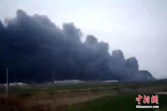 江苏盐城化工厂爆炸。(视频截图)图片来源:东方IC 版权作品 请勿转载