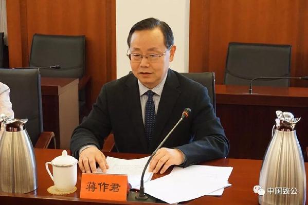蒋作君高度赞扬了国际洪门中华总会长期以来促进两岸交流合作,为推动两岸关系和平发展所作出的积极贡献。他向访问团介绍了习近平总书记在《告台湾同胞书》发表40周年纪念大会上以及在参加十三届全国人大二次会议福建代表团审议时的重要讲话精神。他强调,习近平总书记在纪念大会上的讲话,全面回顾了新中国成立70年来两岸关系的发展历程,深刻昭示了两岸关系发展的历史大势,提出了“一国两制”台湾方案,引起了海峡两岸的高度关注和热烈反响。习总书记在福建团审议时提出的关于“两岸要应通尽通”“要探索海峡两岸融合发展新路”“要对台湾同胞一视同仁”的讲话,充分体现了中国大陆“两岸一家亲”的理念以及对两岸关系发展的高度重视和对台湾同胞的殷切关怀。蒋作君还介绍了中国大陆过去一年来的发展建设成就以及中国致公党发挥侨海特色,积极履行参政党职能,推动与海外华侨华人及港澳台同胞交往的情况。他希望国际洪门中华总会继续团结广大台湾同胞,持续推进两岸多领域民间交流,深化两岸融合发展;继续加强与中国致公党的交流与合作,在双方现有平台的基础上,探索新的合作方式。