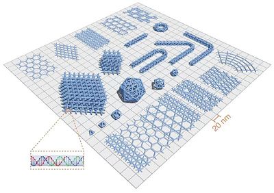 这一新兴的领域被称为DNA折纸技术。折纸是指人们能用一张纸,就可折叠出飞机、青蛙和花朵。同样的,发明DNA折纸技术的科学家使用比头发丝还细一千倍的DNA和RNA等核酸分子,折叠、自组装成复杂的结构。而当DNA中互补的核苷酸碱基接触并结合时,就会产生这样的结果。