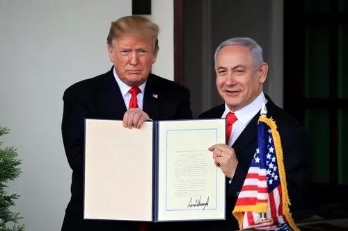 特朗普宣布承认以色列对戈兰高地主权,是在与到访的以色列总理内塔尼亚胡举行会谈后。