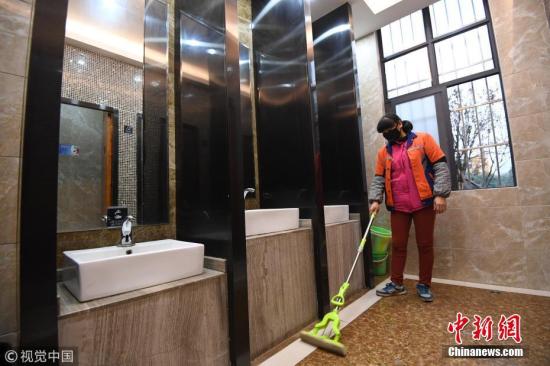 资料图:清洁员在清扫公厕。 图片来源:视觉中国