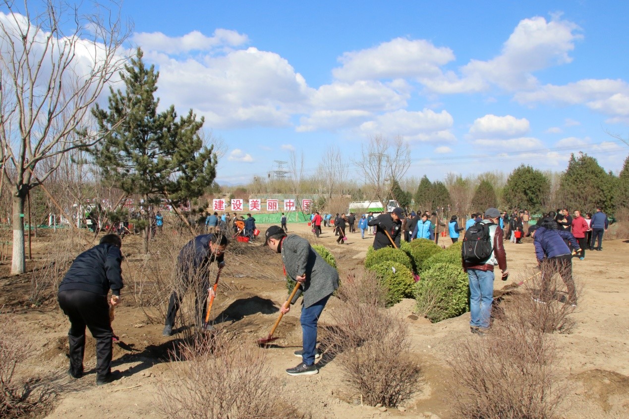 部长们集体乘车来到植树地点后,一下车就拿起铁锹投入到植树劳动中,自动结成劳动小组,相互配合着扶正树苗、回填泥土、围堰浇水,共同栽下油松、银杏、国槐、玉兰、海棠等树木2000余株。