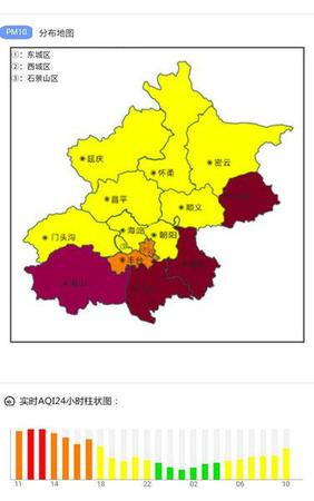 截至上午10时,房山区已达空气重度污染,大兴、通州、平谷为严重污染。北京环保监测中心预计,接下来在东南风的影响下,北京PM10浓度将进一步升高,达到重污染水平,请市民朋友注意健康防护。