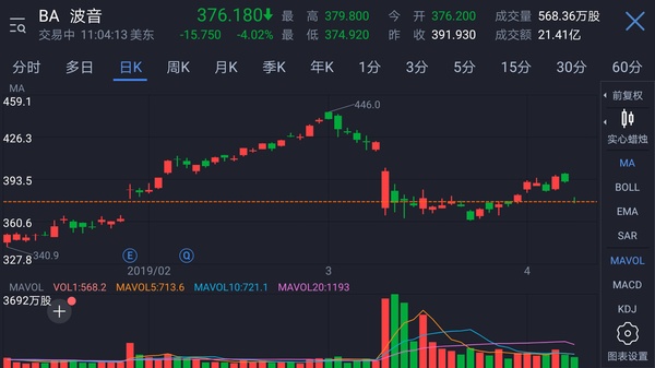 同时,?;⒑?,波音市值曾在近2天内蒸发约260亿美元。本周一,波音公司股价开盘大跌4%。截至发稿(北京时间8日23时),波音报376.17美元,跌幅4.02%。