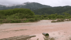 但浑浊的河水越来越急,上涨得速度也越来越快,加上这一段龙泉溪前不久正在施工,溪水深浅难以预测,最深处估计达到1.5米以上,民警也不敢贸然下水,于是一边联系指挥中心汇报情况,一边在现场周边寻找过河位置。