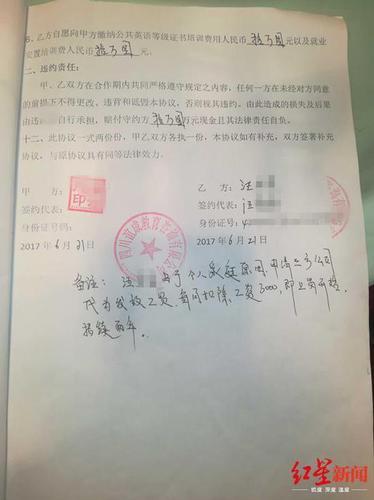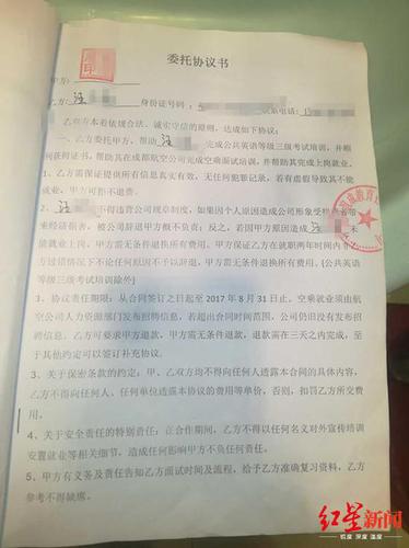 2017年6月21日,他在与四川谊成教育咨询有限公司签的一份委托协议书中约定,“乙方委托甲方(培训机构),帮助汪博完成公共英语等级三级考试培训,并顺利获得证书,帮助其在成都航空公司完成空乘面试培训,并帮助其完成上岗就业?!?/p>