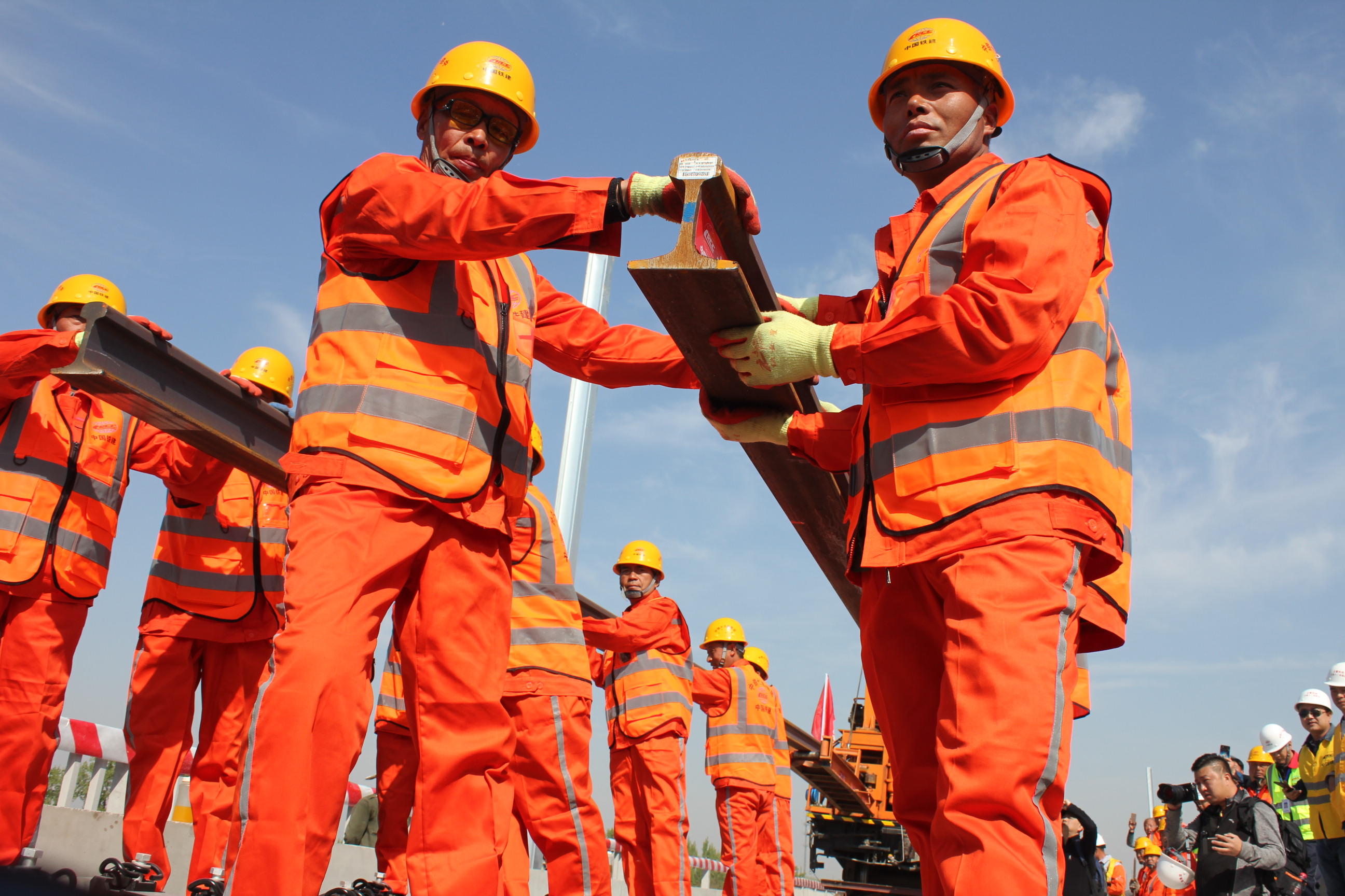 图为京雄城际铁路铺轨施工现场。 人民政协网记者 付振强 摄