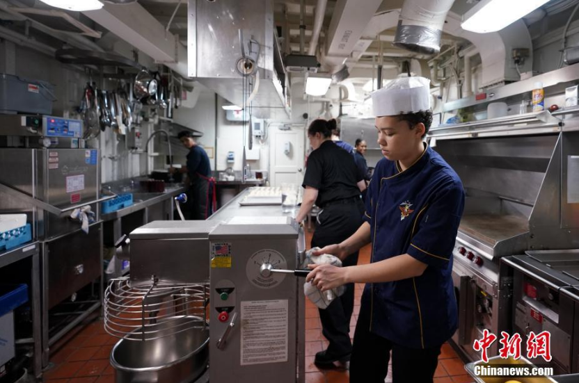 4月20日,美国海军第七舰队旗舰“蓝岭”号两栖指挥舰抵达香港,??吭谡猩叹致胪贰M?科诩湔蹈椿罱诩倨冢苯谙愀酃酃夤何锖拖硎苊朗?,舰上乐队还将到香港海洋公园和迪士尼乐园表演。图为舰上从事后勤工作的女兵。中新社记者 张炜 摄