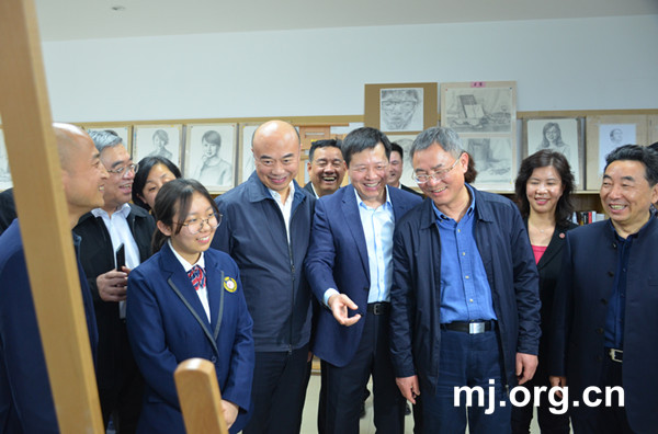 民进中央调研组一行在西安交大航天中学调研。