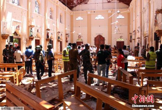 资料图:斯里兰卡多个教堂和高级酒店4月21日复活节当天发生爆炸,已造成数百人伤亡。斯里兰卡安全官员正展开调查。图为警方和安全官员正在发生爆炸的教堂进行现场勘查。
