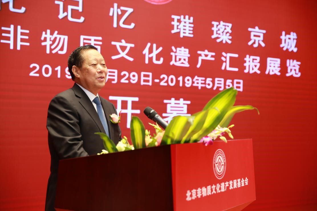 第十二届全国政协副主席、北京非物质文化遗产发展基金会名誉理事长刘晓峰宣布展览开幕