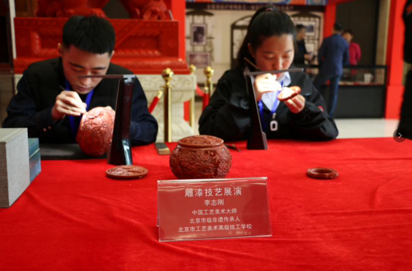 展览期间,景泰蓝、雕漆、花丝镶嵌、京绣、剪纸、京派内画鼻烟壶等具有代表性的工艺制作大师进行了现场技艺展演,全聚德挂炉烤鸭技艺、东来顺涮羊肉制作技艺等传统老字号国家级非遗技艺和现场观众进行了互动,与大家相约五一假期文化之旅。