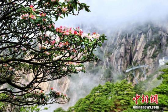 目前正是黄山风景区“黄山杜鹃”的最佳观赏期,在黄山风景区玉屏楼、北海、西海、散花坞、始信峰等地均有较大面积分布,吸引了不少中外游客驻足拍照留影。张涛 摄