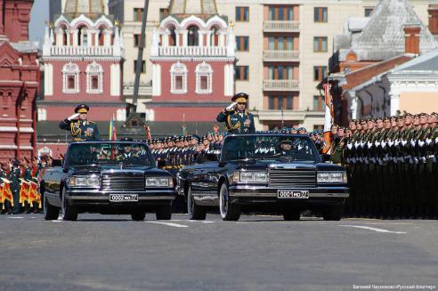 作为阅兵中最受关注的人,阅兵指挥官乘坐的交通工具也是外界关注的焦点。在1945年5月8日的第一次胜利日阅兵中,朱可夫元帅骑马检阅了部队。而从1953年开始汽车代替了军马,莫斯科利哈乔夫汽车制造厂的“吉尔”牌敞篷车一直作为阅兵检阅车辆使用。特别是吉尔41047型敞篷车从上世纪八十年代以来已服役三十余年。直到今年4月,2019年俄胜利日阅兵在阿拉比诺训练场进行了最后一次公开彩排,奥鲁斯(aurus)敞篷车才首次公开亮相。