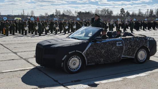 即将参加阅兵的这款敞篷检阅车拥有与奥鲁斯车系不同的车身轮廓,车门的设计也更加宽敞,安装有额外的扶手和麦克风架。这款敞篷车同时配备了9速自动变速箱和全地形驱动。有俄媒称,这款全新的阅兵检阅车或成为今年阅兵的最大亮点。