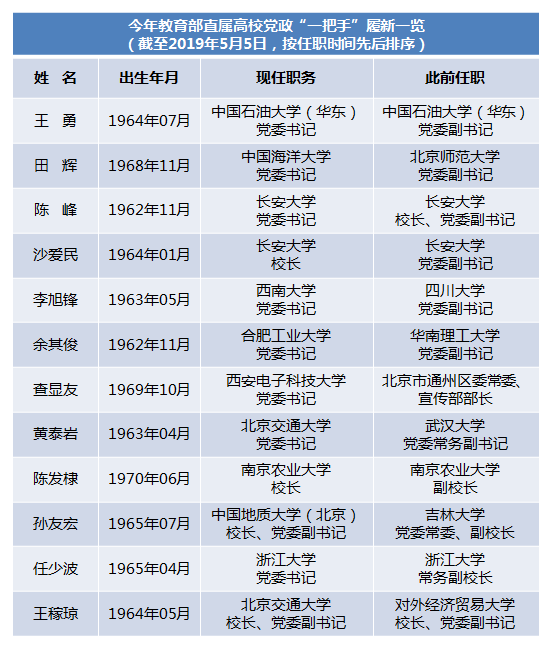 今年至少已有10所教育部直属高校党政“一把手”调整
