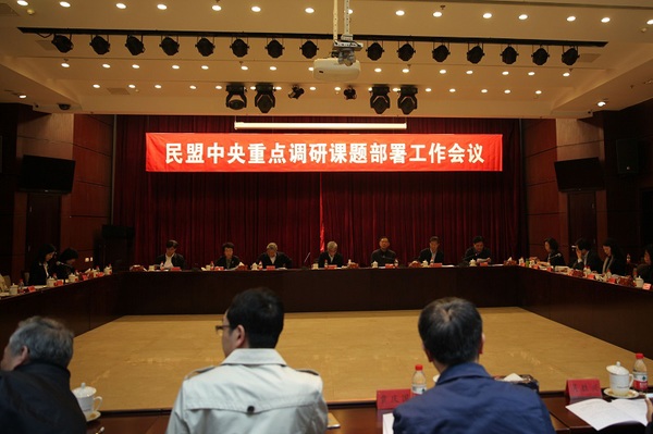 2019年4月29日,民盟中央在北京召开重点调研课题部署工作会议。全国人大常委会副委员长、民盟中央主席丁仲礼,民盟中央副主席徐辉、龙庄伟、曹卫星、程红、郑功成等出席会议,副主席张道宏主持会议。