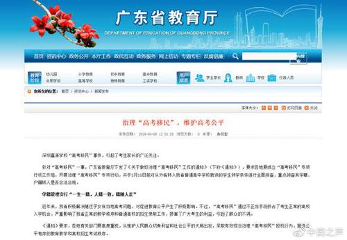广东省教育厅厅长:一旦发现高考移民安排回原籍高考,高考后发现将取消高考成绩