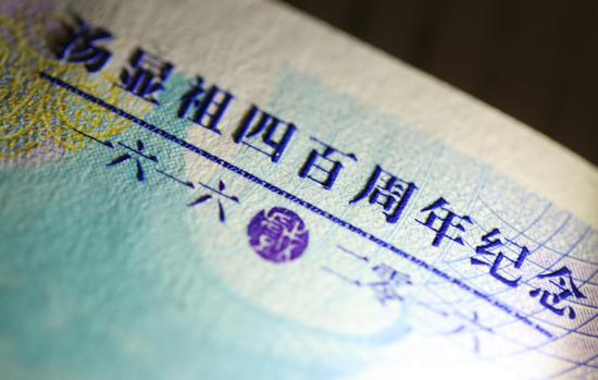 黑科技加持 汤显祖纪念券10处特殊防伪