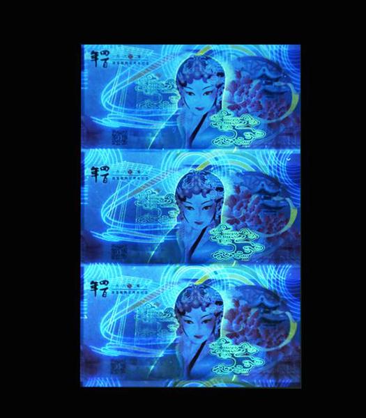 人物右下角祥云采用光变凹印油墨印制,